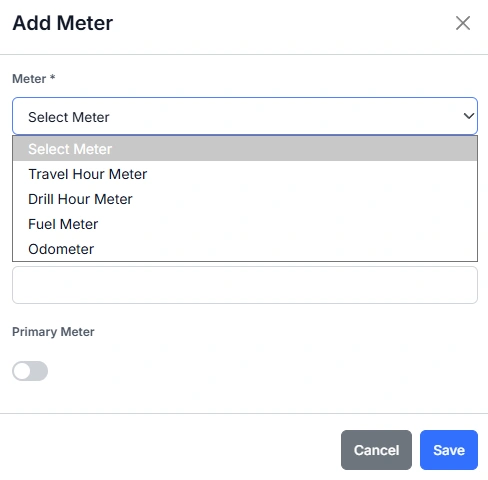 Only Standard and Advanced Assets can have Meters added. Standard Assets can have one meter. Advanced Assets can have multiple Meters. See Asset Planning Types.