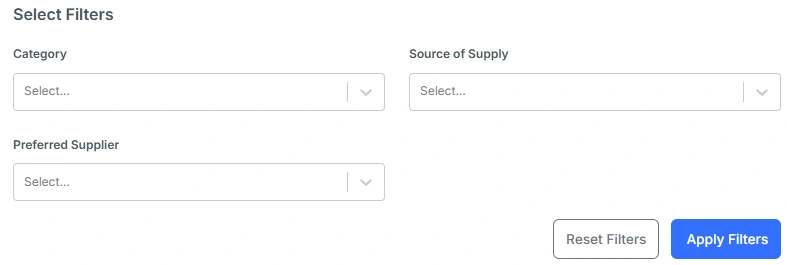 In the top left of many table screens, you’ll see a Filter icon and a Clear Filters (X) icon. Selecting the Filter icon opens the filter form, where you can choose criteria to narrow the results.