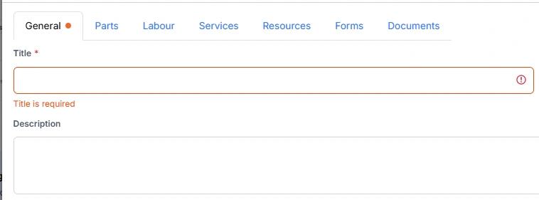 If you try to save the form without completing required fields, an error message will appear.