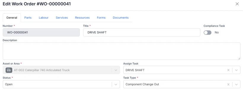 A Work Order often represents a trigger for a component changeout, so linking it to the corresponding task ensures that: