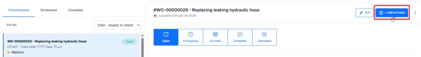 - Three Work Orders are added to the Event